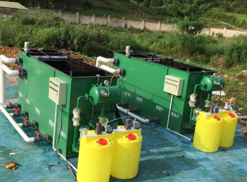针对中小肉类加工企业场地小,缺乏专业的运营人员的特点,我公司采用“气浮+水解酸化+接触氧化+沉淀+消毒”的工艺,开发出全自动的一体化设备。