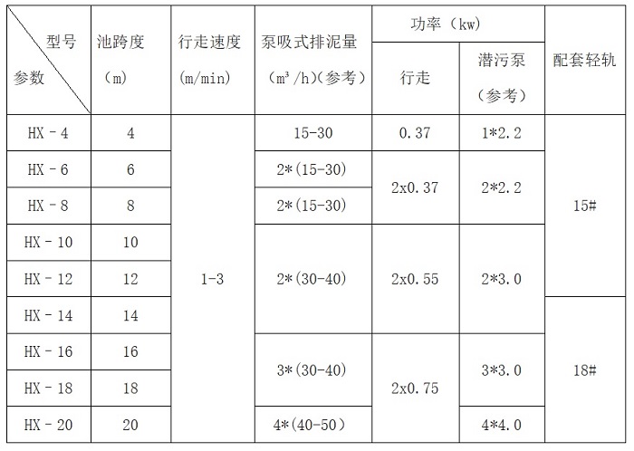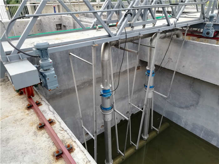 桁车刮吸泥机用于污水处理厂平流沉淀池,将沉降在池底的污泥刮集至集泥槽用泵吸式将污泥排出二沉池,并将池面的浮渣撇向集渣槽(可选)。