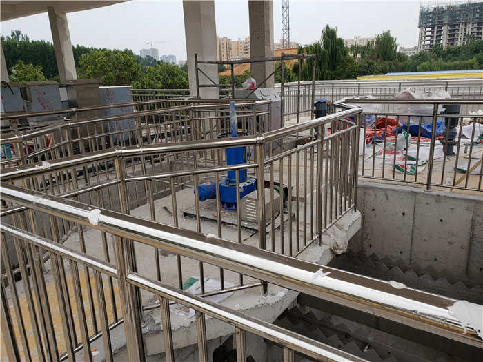 进水从管道进入快速混合池,同时投加絮凝剂,经过快速搅拌,从而达到快速絮凝,并避免矾花沉淀。
