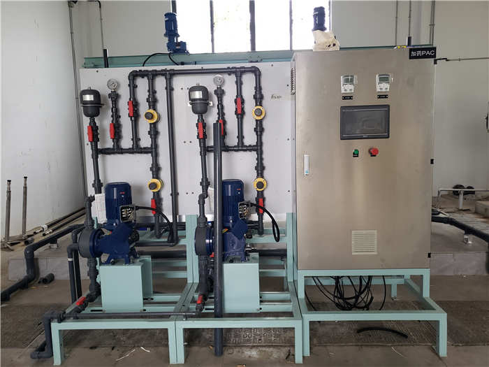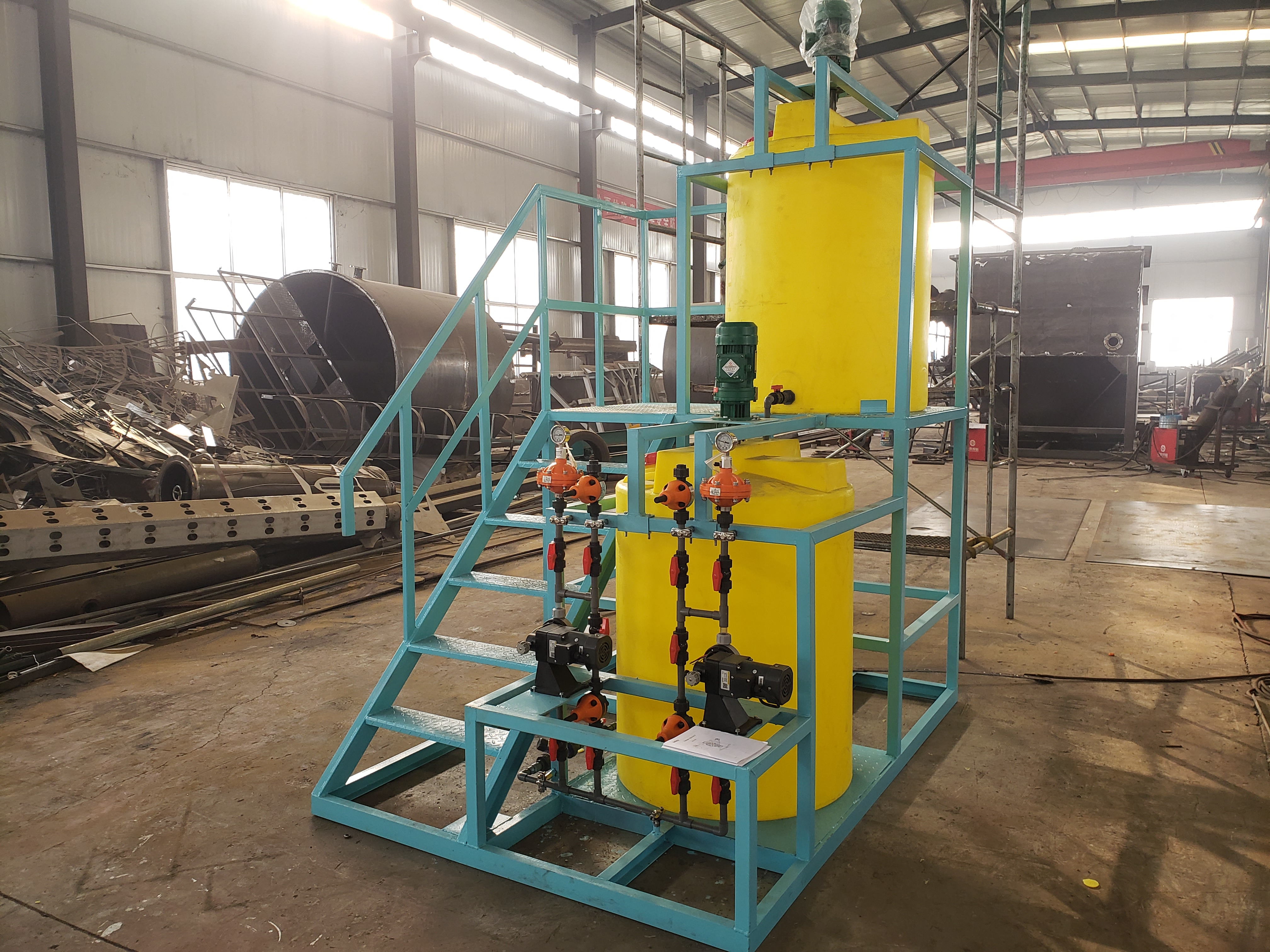 自动加药装置主要溶液箱、搅拌装置、计量泵、Y型过滤器安全阀、背压阀、止回阀、脉冲阻尼器、水位表、压力表、控制柜、安装平台等组成一体化安装在一个底座上。用户只需将组合式加药装置安放在加药间,将加药管接好接通电源即可启动投入运行,在运行过程中自动检测流体的酸碱度智能判断并加投相应的药液,这种工厂化的整套装置,可大大减少设计和现场施工的工作量,基本实现无人看管,对整机的质量、安全和现场投运提供了可靠的保证。